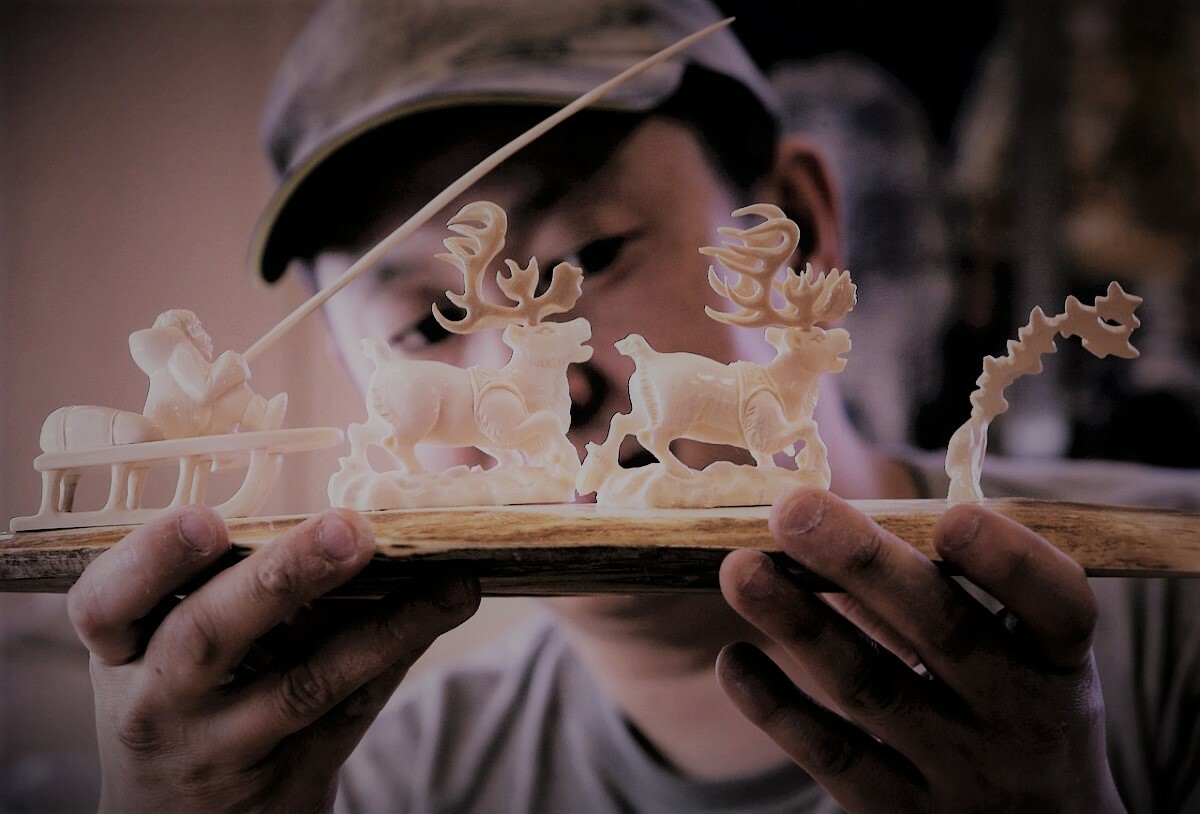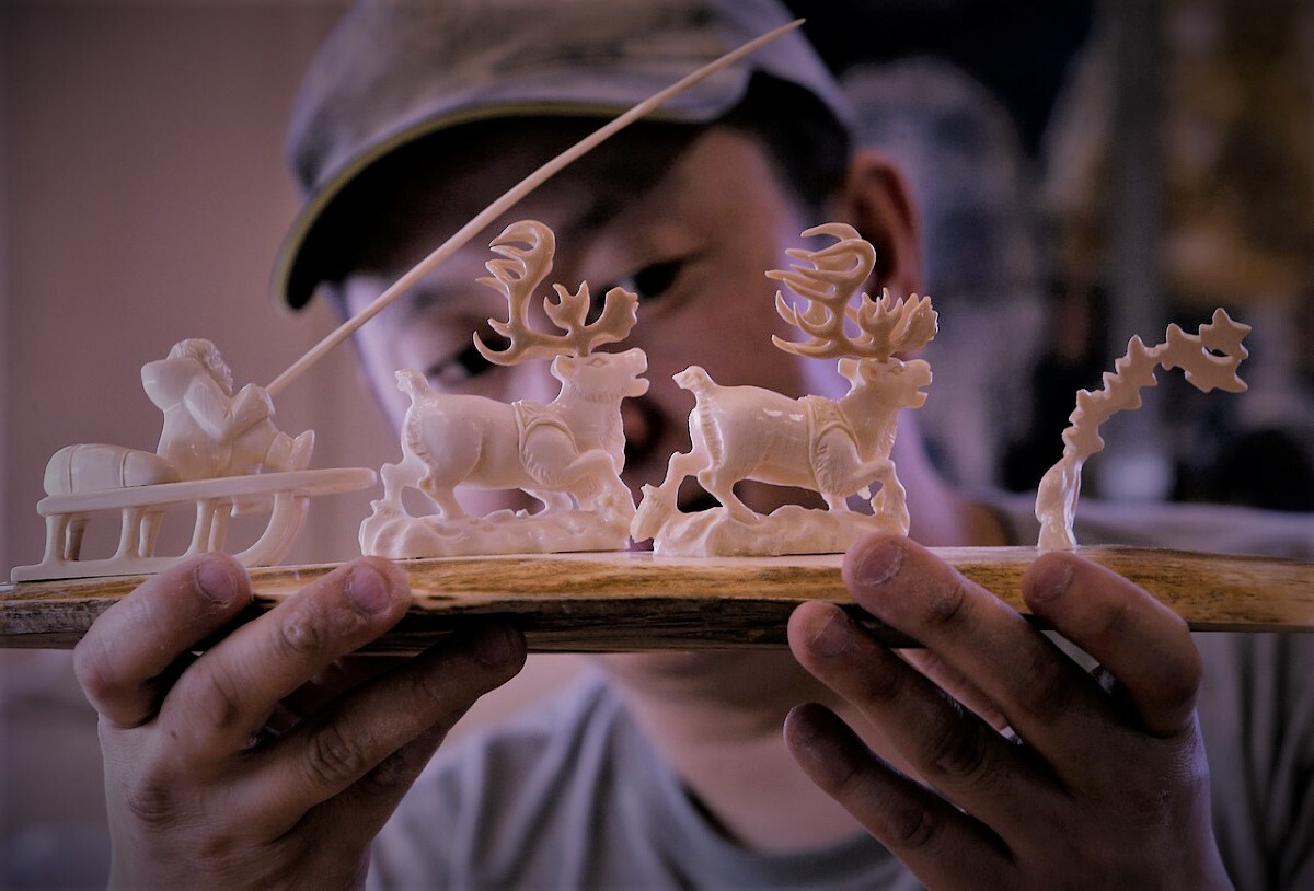 Резьба и гравировка по кости – одно из самых ярких проявлений искусства арктических народов. Вырезанные из моржового клыка фигурки и фигурные композиции, покрытые гравировальным рисунком клыки моржа, декоративные ножи и другие предметы составляют ценные коллекции в музеях России и мира.Так, например, Уэленская косторезная мастерская им. Вуквола гремит на весь мир.